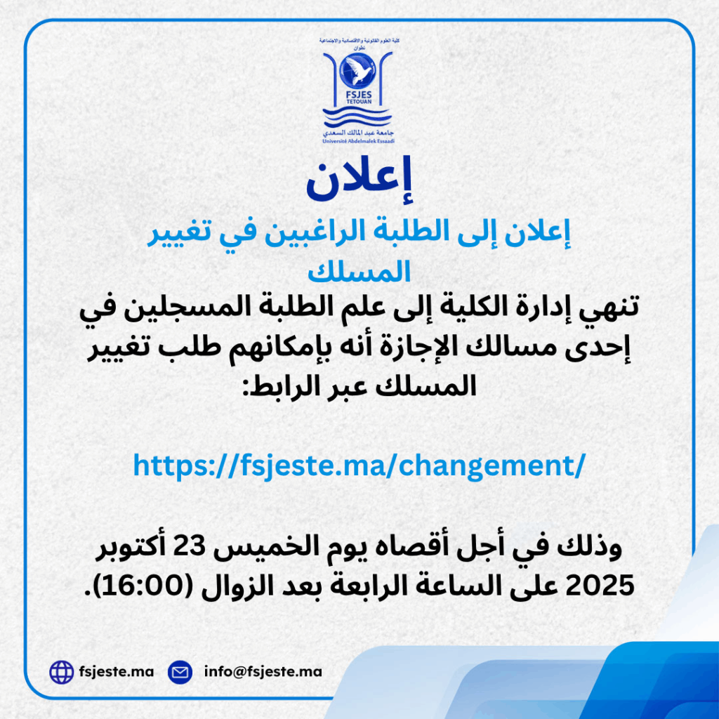 إعلان إلى الطلبة الراغبين في تغيير المسلك