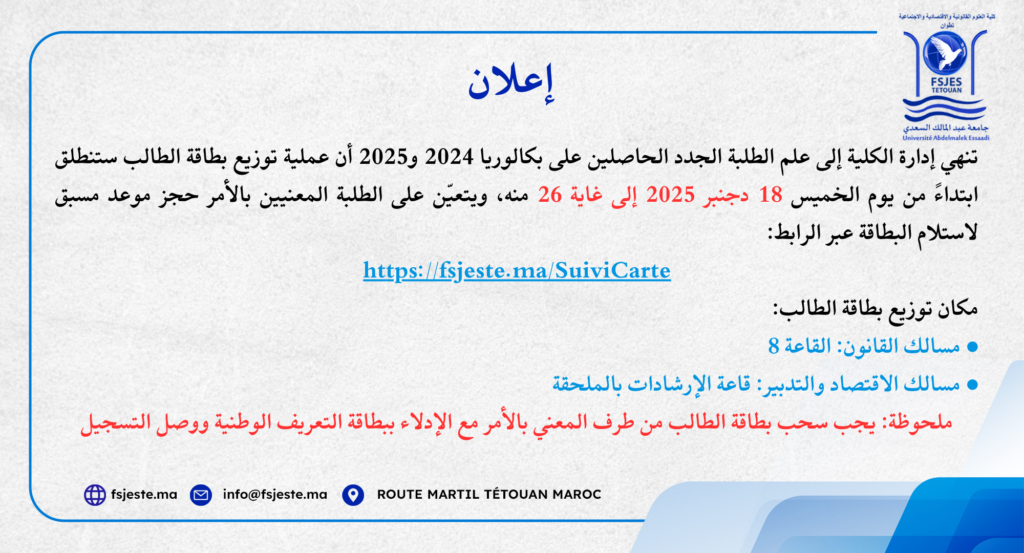 إعلان عملية توزيع بطاقة الطالب