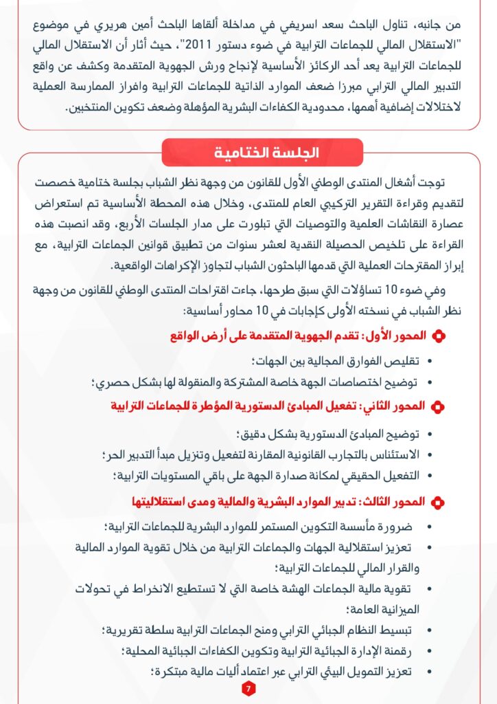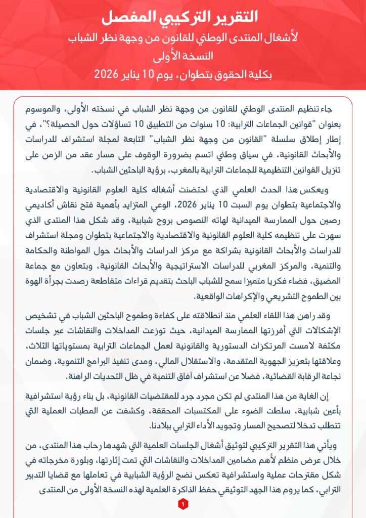 التقرير التركيبي التفصيلي لأشغال المنتدى الوطني الأول للقانون من وجهة نظر الشباب