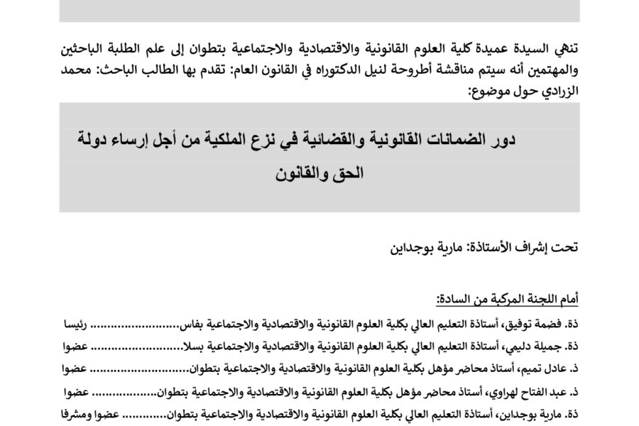 لائحة المقبولين للتسجيل في سلك الدكتوراه ميثاق الأطروحة (بالعربية) ميثاق الأطروحة (بالفرنسية) القانون الداخلي مشروع…