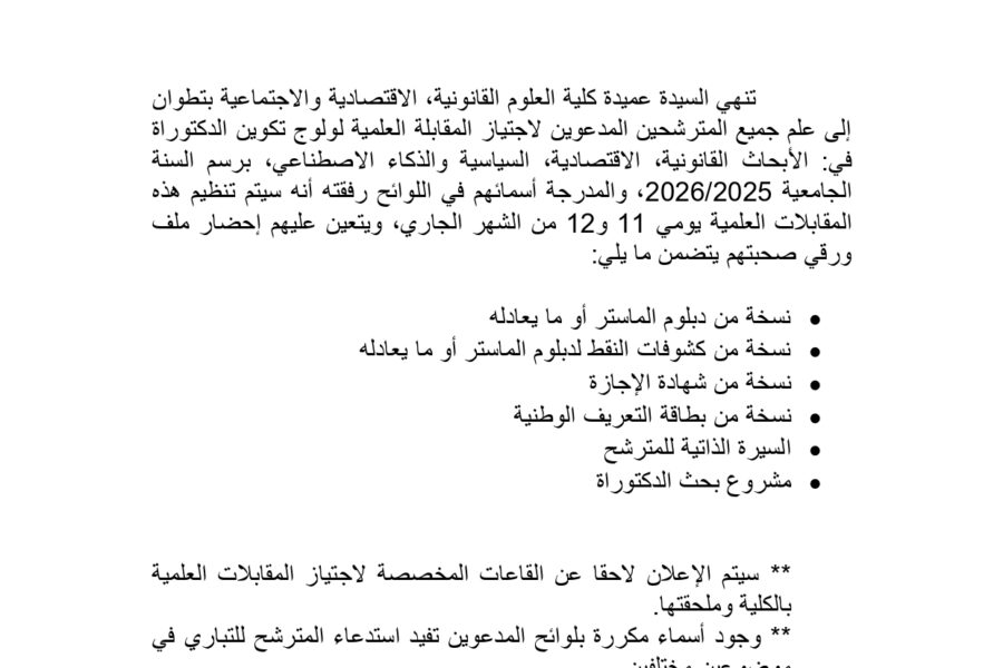 ACTUALITÉS إعلان عن لوائح المقبولين لاجتياز مباراة الدكتوراه Liste Droit Public Liste Droit Prive Liste sciences Economique et gestionLamrani NaoualNovember 6, 2025