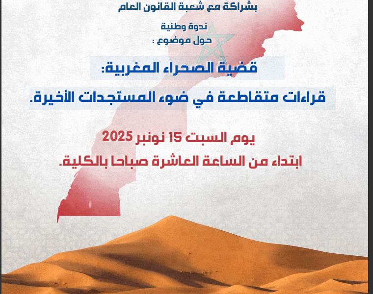 ACTUALITÉSÉVÉNEMENTS تقرير ندوة وطنية :قضية الصحراء المغربية نظمت كلية العلوم القانونية والاقتصادية والاجتماعية بتطوان جامعة عبد المالك السعدي بتعاون مع شعبة القانون…Lamrani NaoualNovember 15, 2025