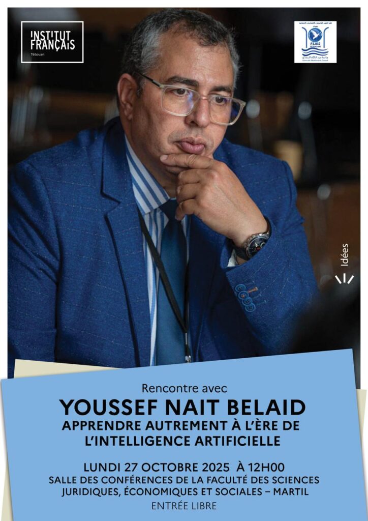 L’Institut français du Maroc à Tétouan et la Faculté des Sciences Juridiques, Économiques et Sociales de Tétouan organisent une rencontre avec Youssef Nait Belaid, auteur et spécialiste des politiques éducatives et de l’innovation pédagogique, autour de son ouvrage : Apprendre autrement… : pour une politique d’apprentissage tout au long de la vie à l’ère de l’intelligence artificielle, de la vision à l’action.